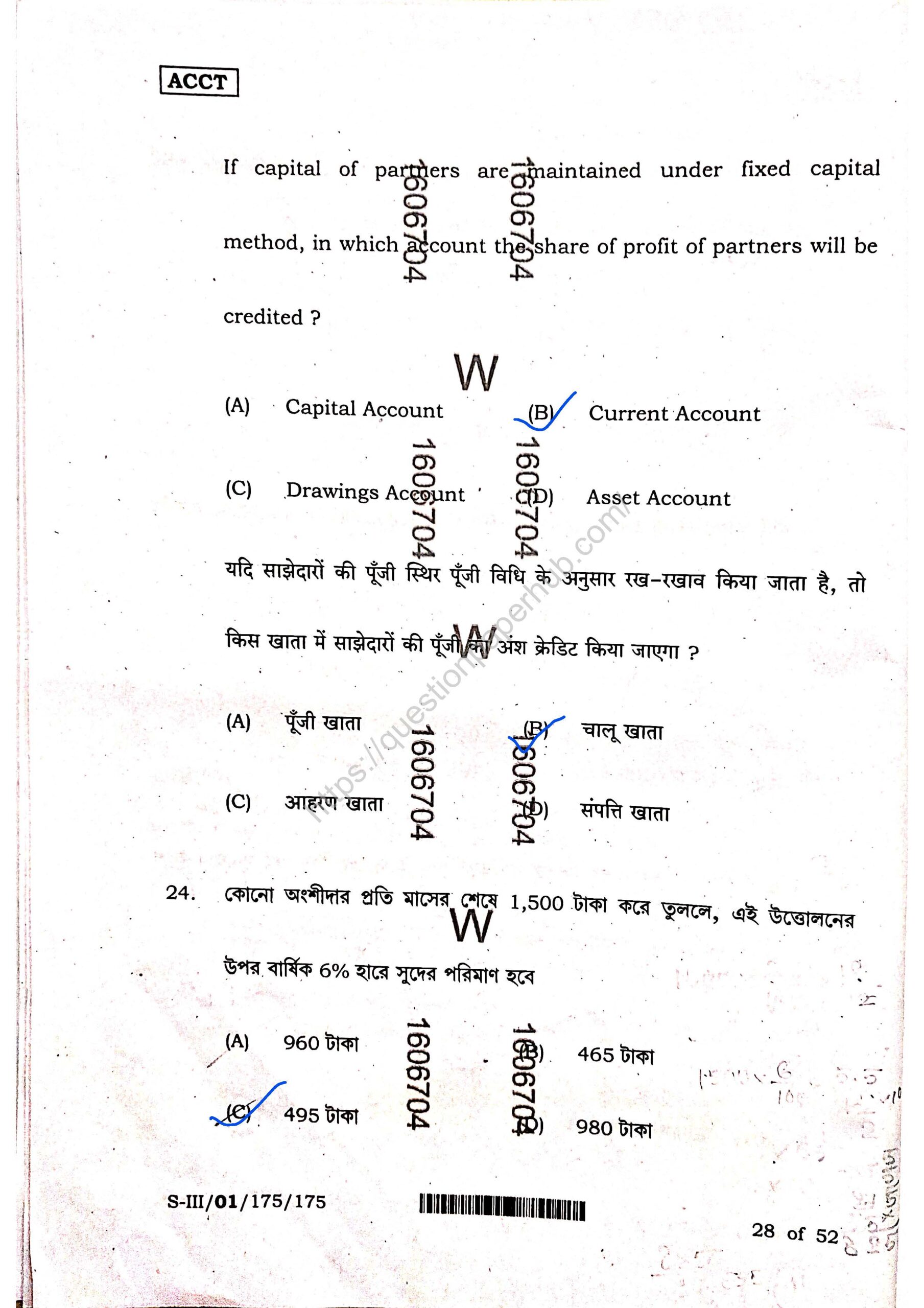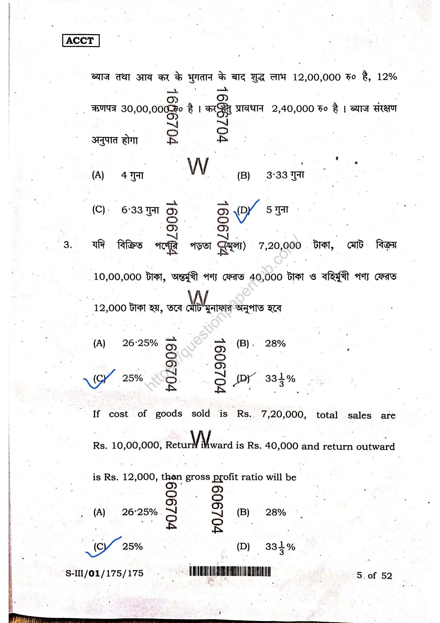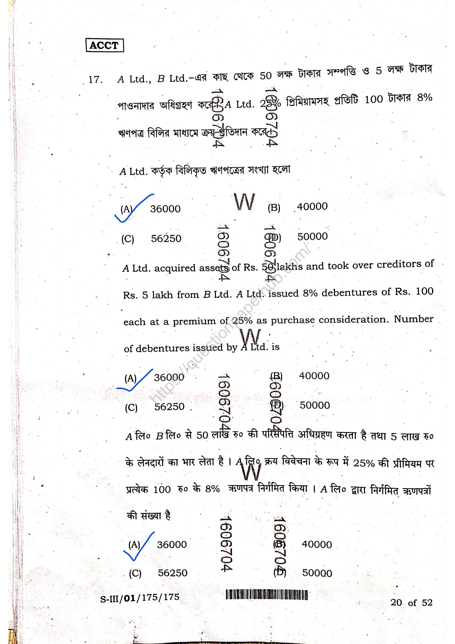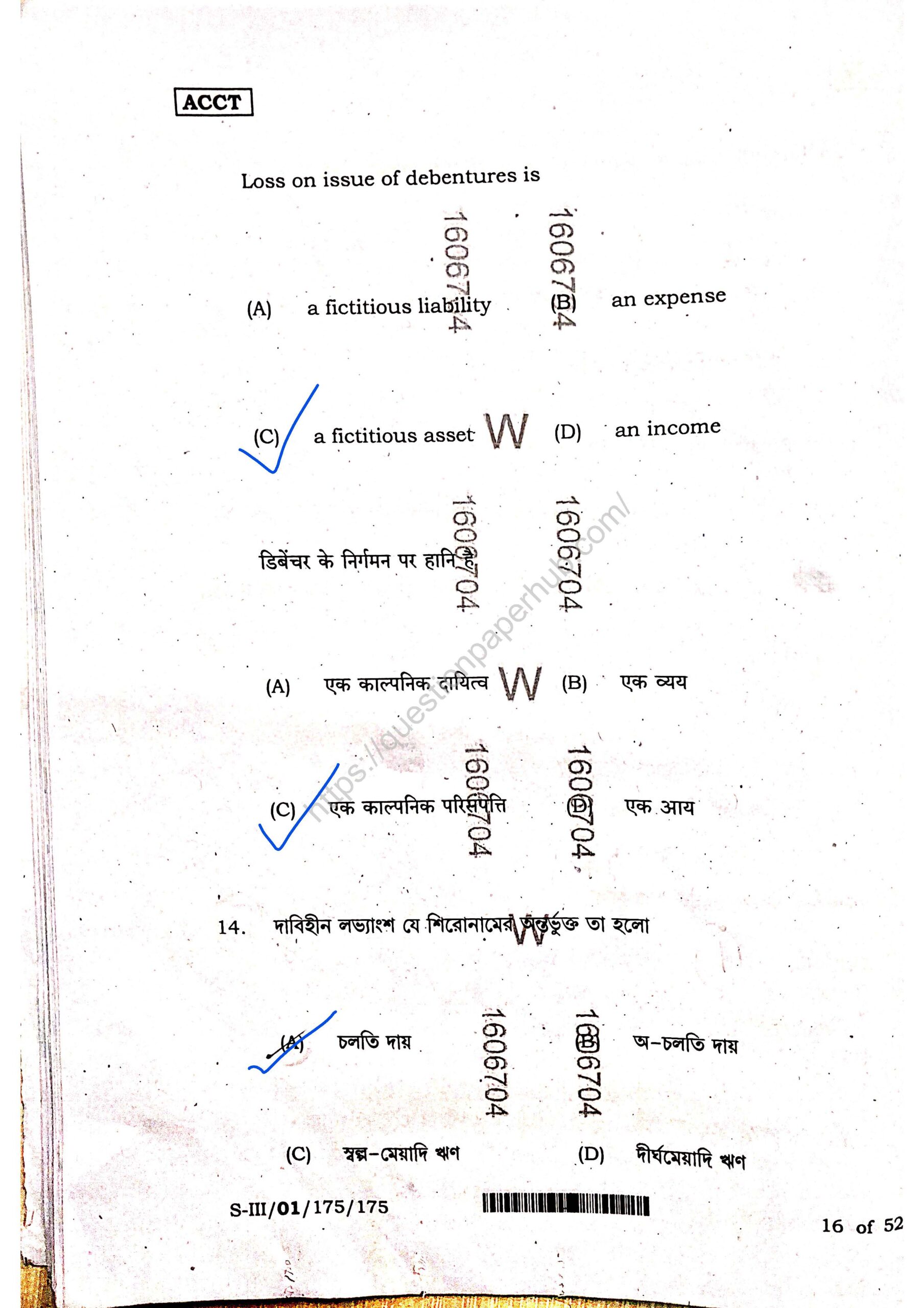 Structures of WBCHSE Accountancy Sem-3 Question Paper.