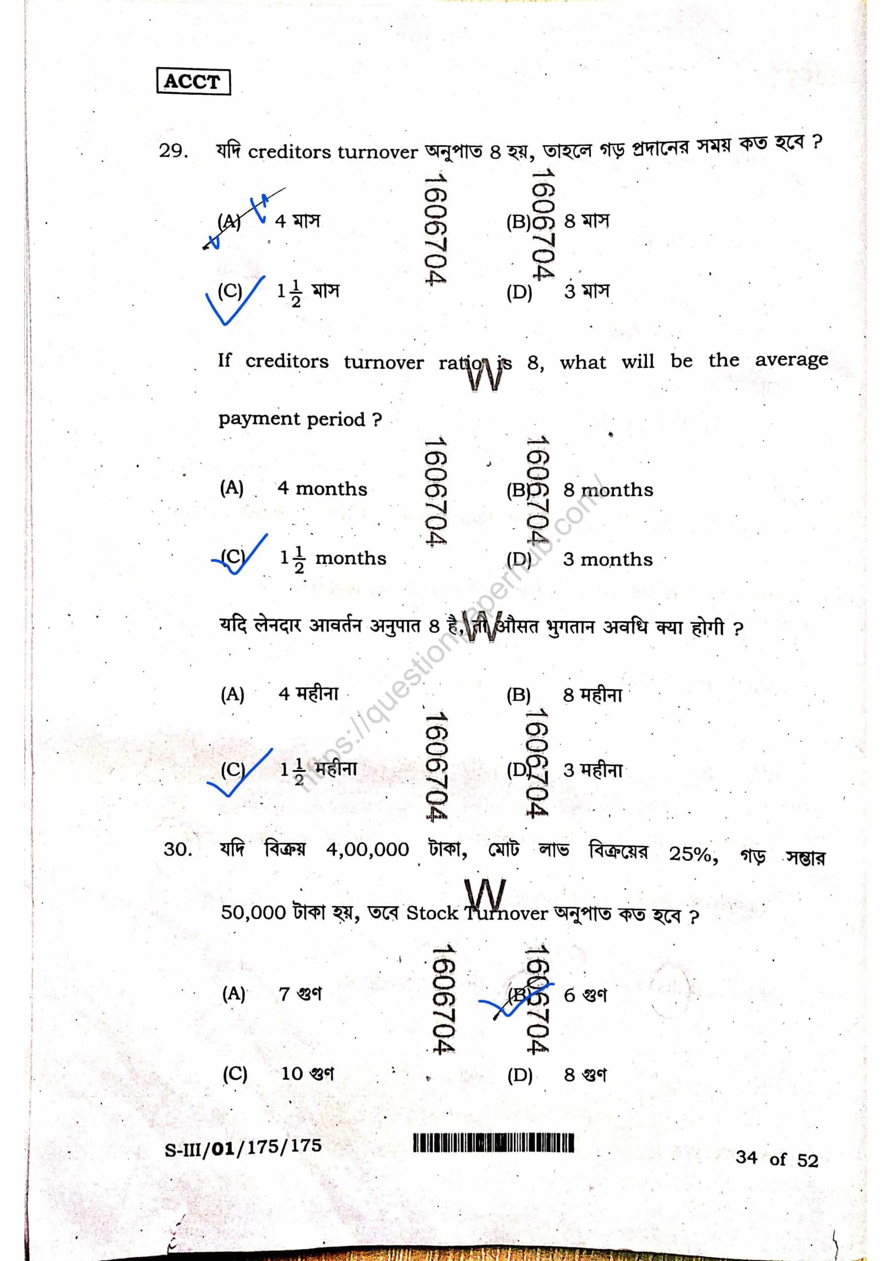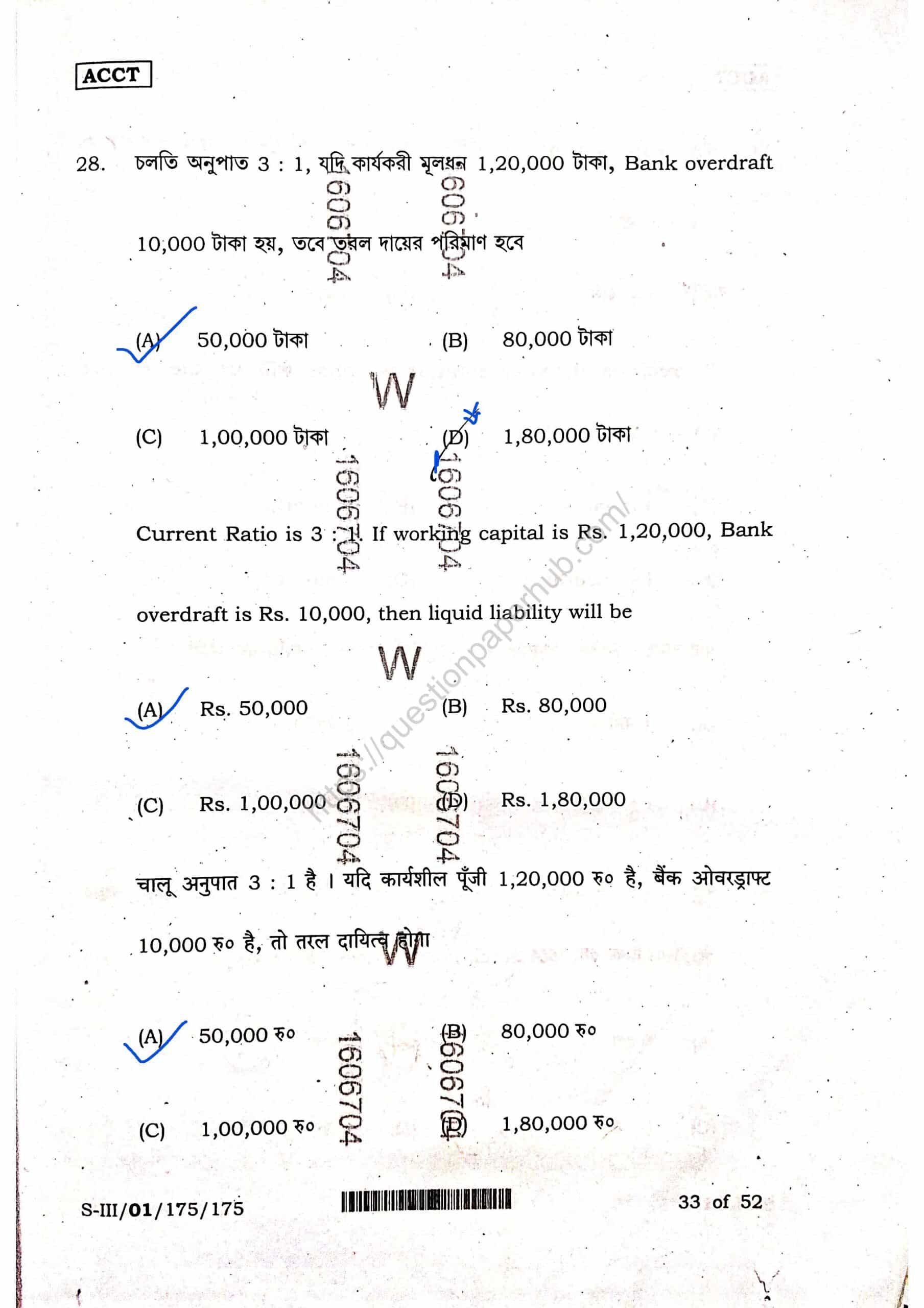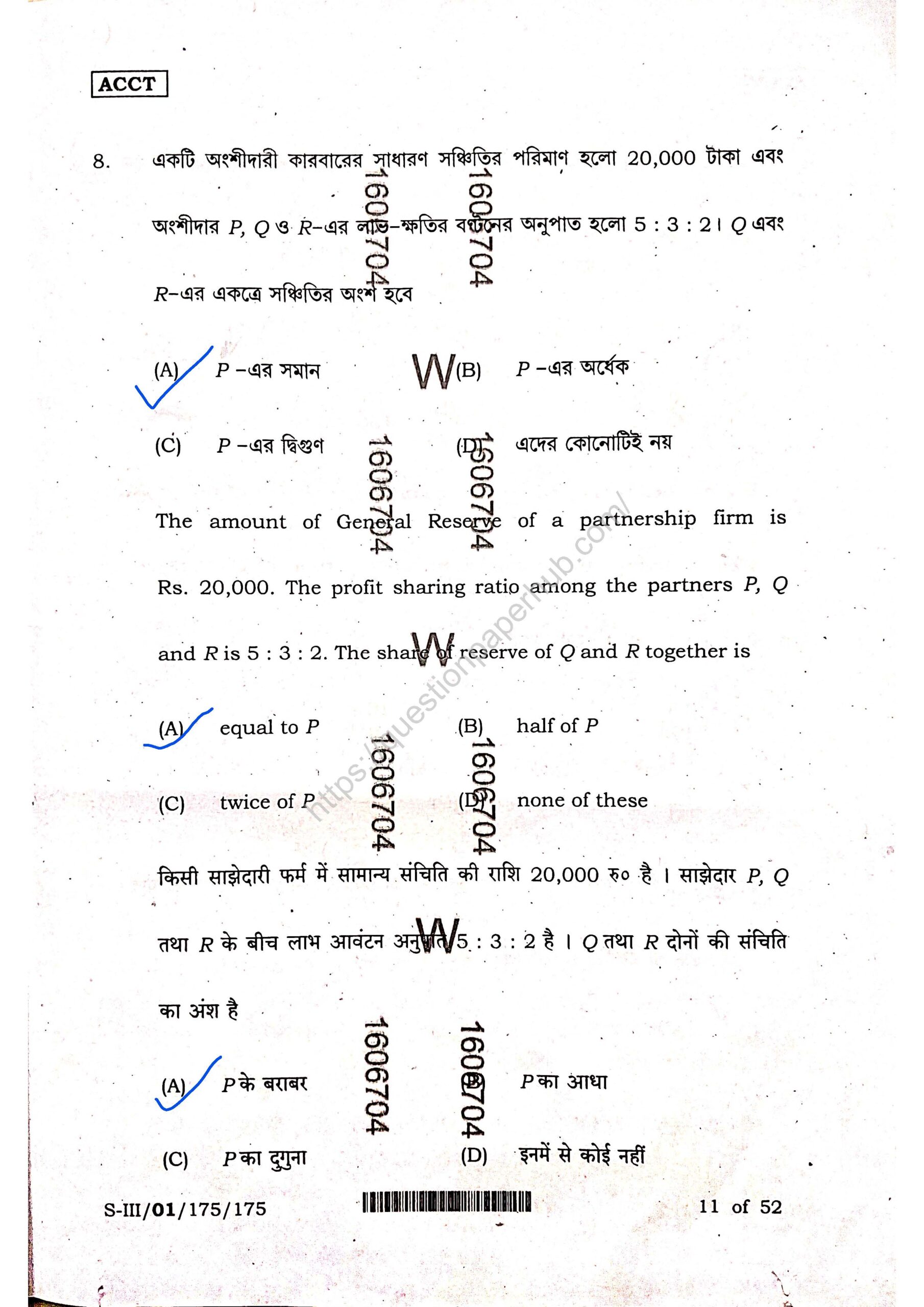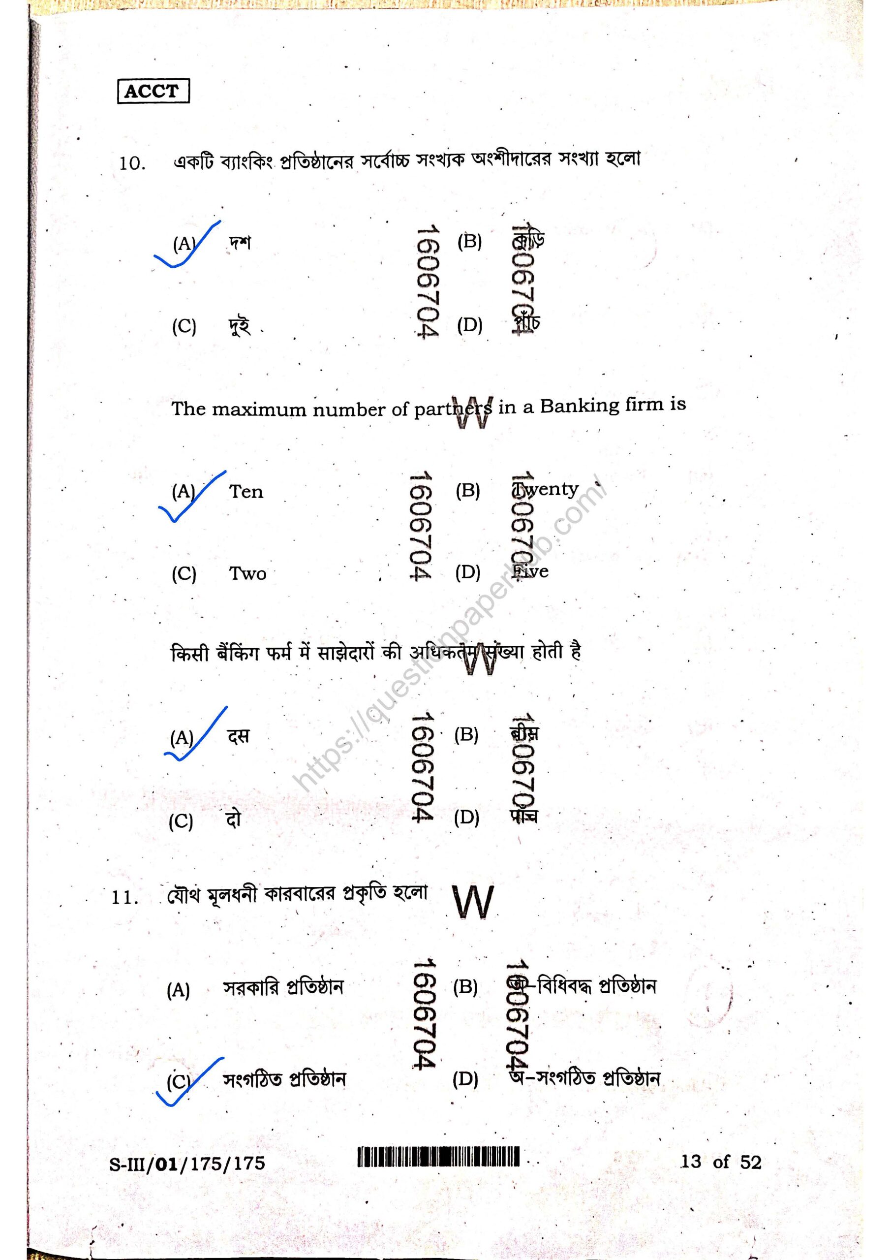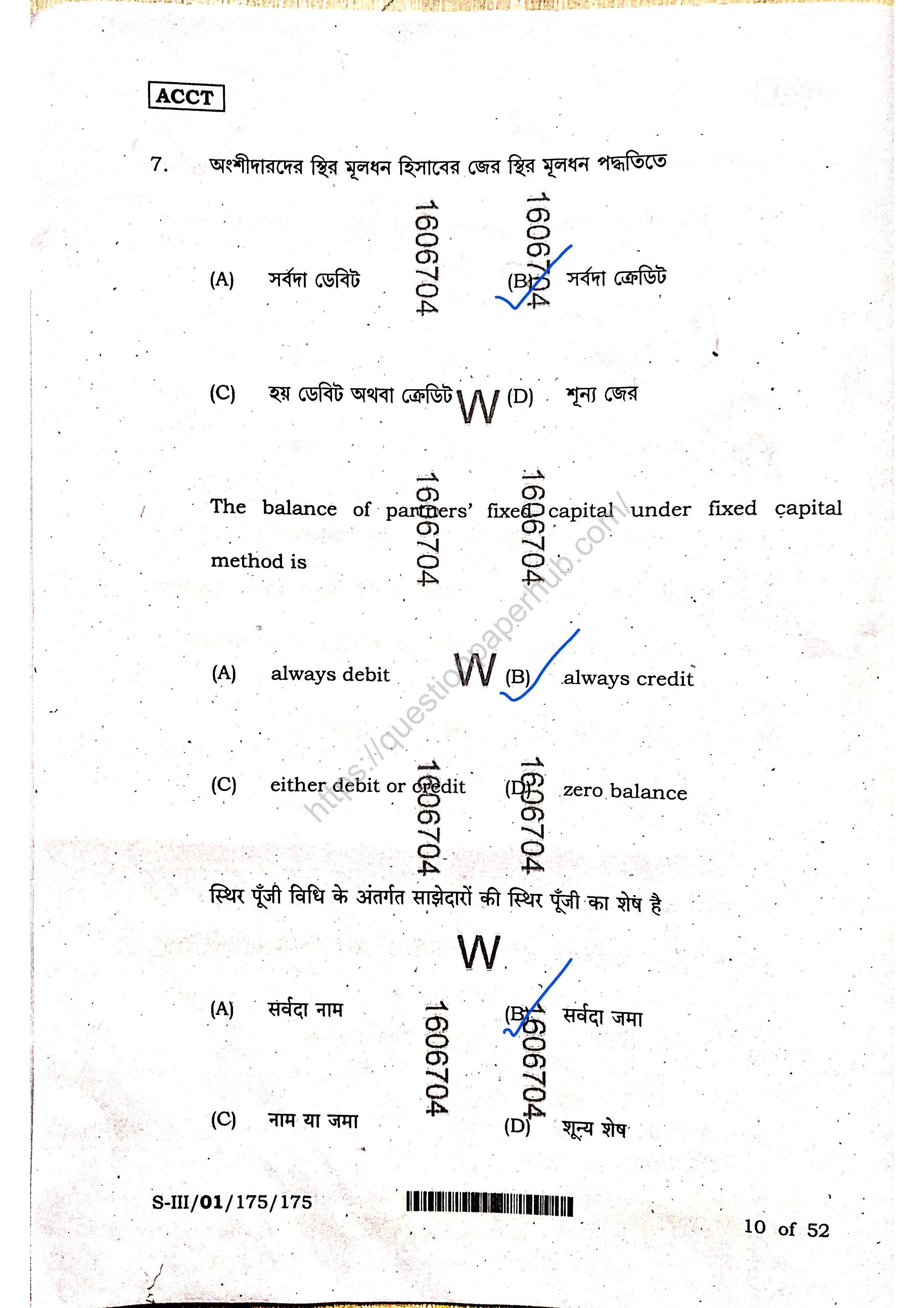 Structures of WBCHSE Accountancy Sem-3 Question Paper.