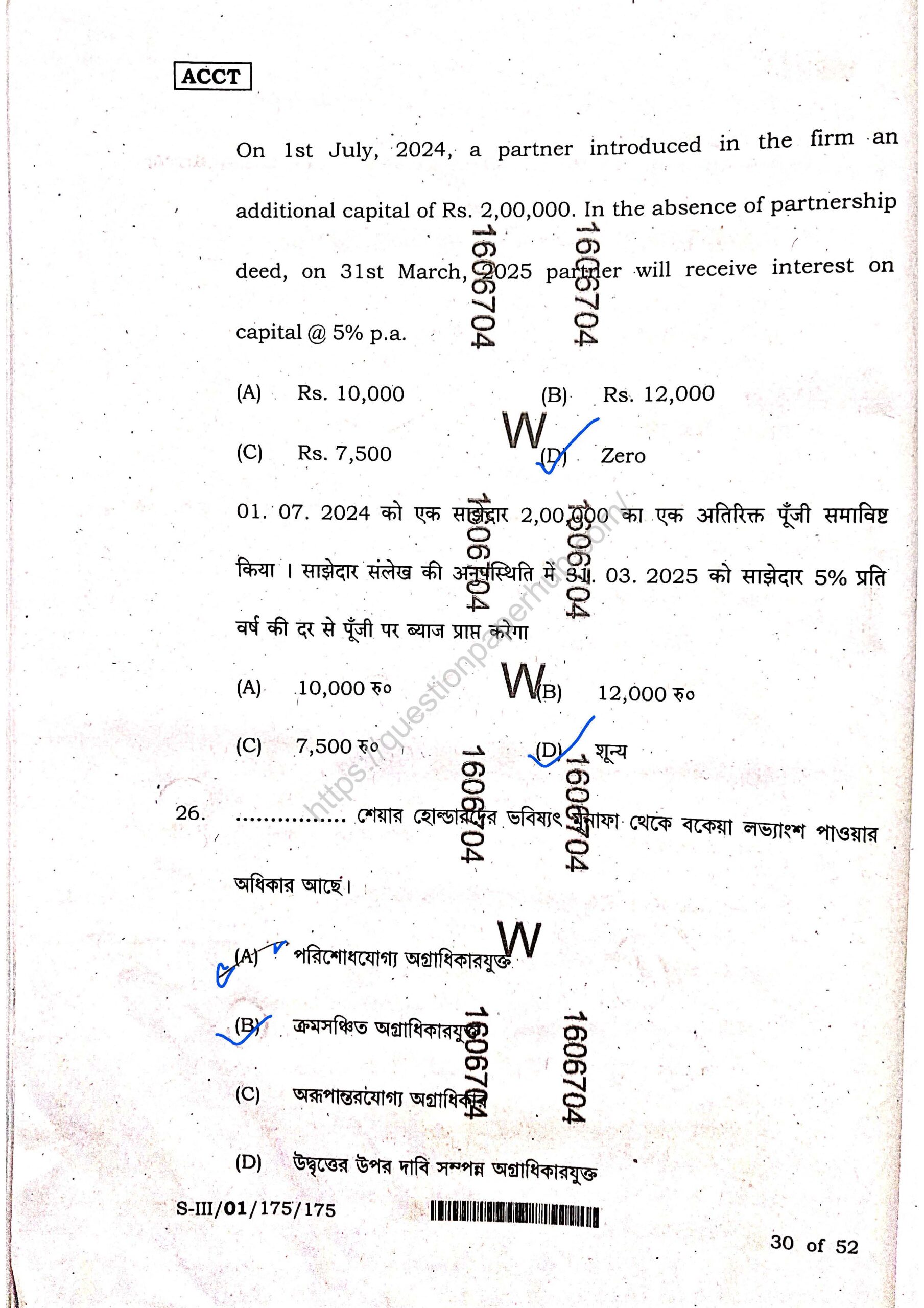 WBCHSE HS Accountancy Question Paper (Semester-III, 2025-26) Summary